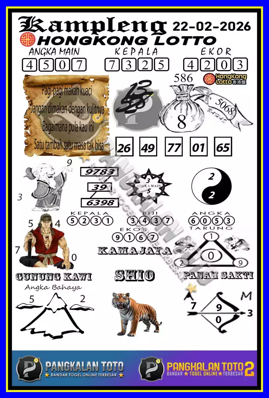 Syair togel hongkong adalah kode gambar yang dikeluarkan ke publik untuk menolong pemain judi togel supaya dapat semakin gampang untuk menang di menerka-nerka angka togel. Hal ini dikerjakan untuk dapat memperoleh kode syair togel karena itu pemain dapat segera membuka situs prediksi togel online yang telah disiapkan dengan fasilitas online. Situs Prediksi JOGJATOTO sendiri memiliki beberapa situs prediksi togel yang dibikin oleh beberapa master togel yang telah eksper yang mempunyai mimpi dapat menolong beberapa pencinta togel menang di beli nomor togel.