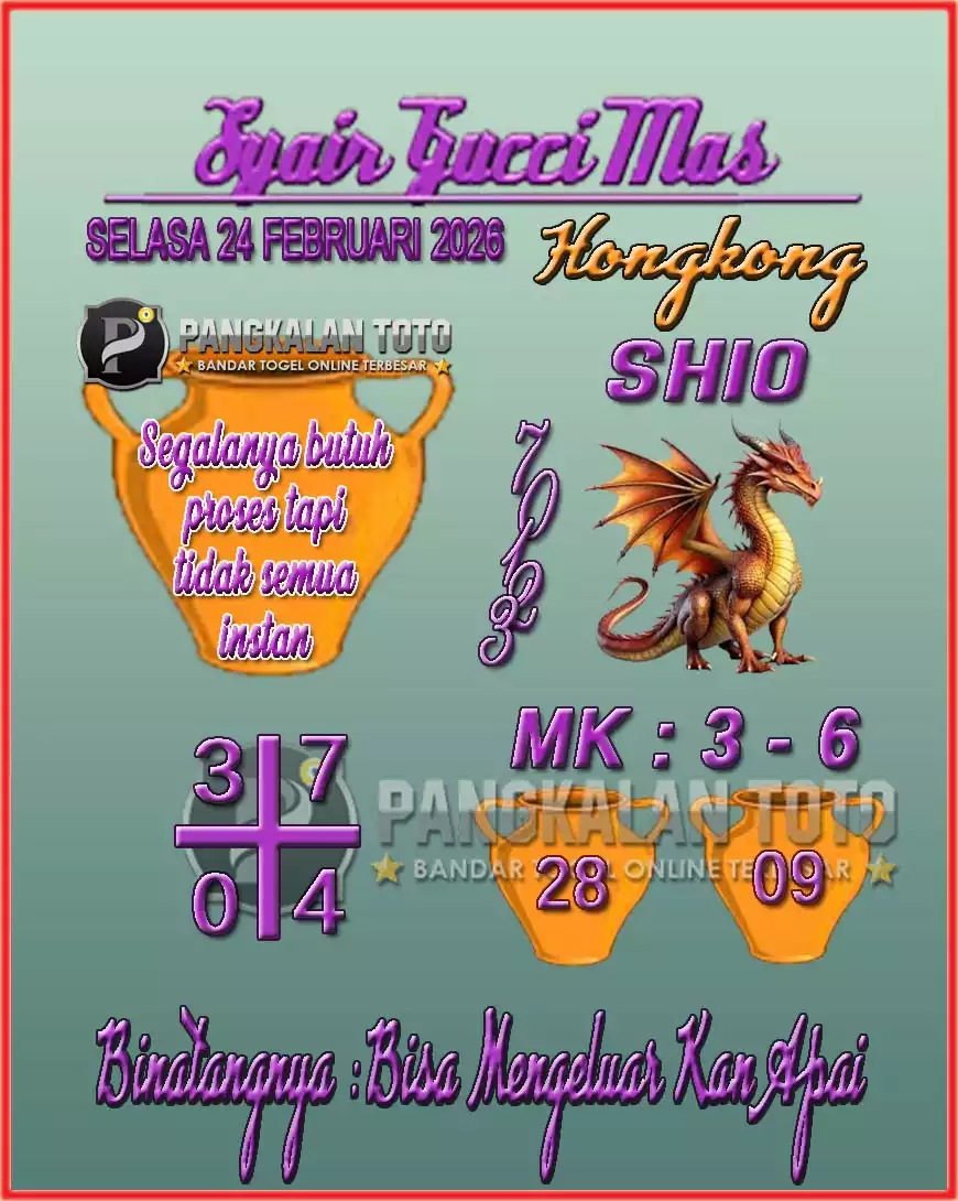 Syair togel hongkong memang kerap terkait dengan angka keluaran hongkong yang hendak muncul di masa nanti. Dalam Berkenaan ini beberapa baik dapat memaksudkan dan mengartikan syair togel online hk itu akhirnya bisa memperoleh angka yang pas di masing-masing kali penempatan taruhan judi di Bandar Togel Online JOGJATOTO. Punyai beberapa keuntungan yang bagus sekali berkaitan dengan penempatan taruhan togel dengan sistem online. Dengan penempatan sama sesuai perhitungan sampai akan mendapati berkali-kali kemenangan. Silakan gunakan syair togel hk ini untuk mendapati angka tepat untuk meraih kemenangan besar.