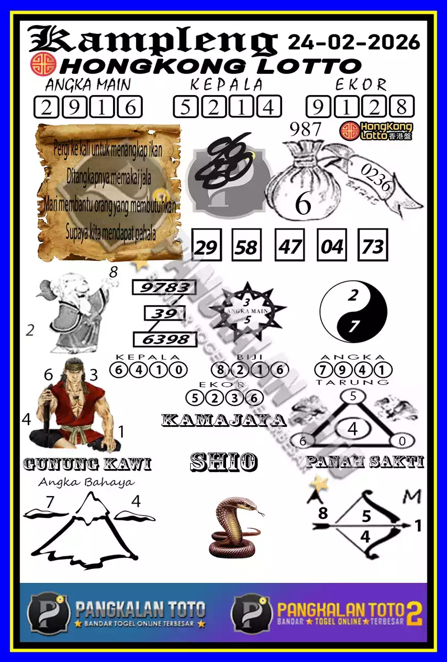 Syair togel hongkong adalah kode gambar yang dikeluarkan ke publik untuk menolong pemain judi togel supaya dapat semakin gampang untuk menang di menerka-nerka angka togel. Hal ini dikerjakan untuk dapat memperoleh kode syair togel karena itu pemain dapat segera membuka situs prediksi togel online yang telah disiapkan dengan fasilitas online. Situs Prediksi JOGJATOTO sendiri memiliki beberapa situs prediksi togel yang dibikin oleh beberapa master togel yang telah eksper yang mempunyai mimpi dapat menolong beberapa pencinta togel menang di beli nomor togel.
