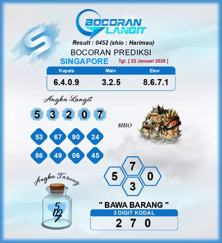 Syair togel singapore adalah kode gambar yang dikeluarkan ke publik untuk menolong pemain judi togel supaya dapat semakin gampang untuk menang di menerka-nerka angka togel. Hal ini dikerjakan untuk dapat memperoleh kode syair togel karena itu pemain dapat segera membuka situs prediksi togel online yang telah disiapkan dengan fasilitas online. Situs Prediksi JOGJATOTO sendiri memiliki beberapa situs prediksi togel yang dibikin oleh beberapa master togel yang telah eksper yang mempunyai mimpi dapat menolong beberapa pencinta togel menang di beli nomor togel.