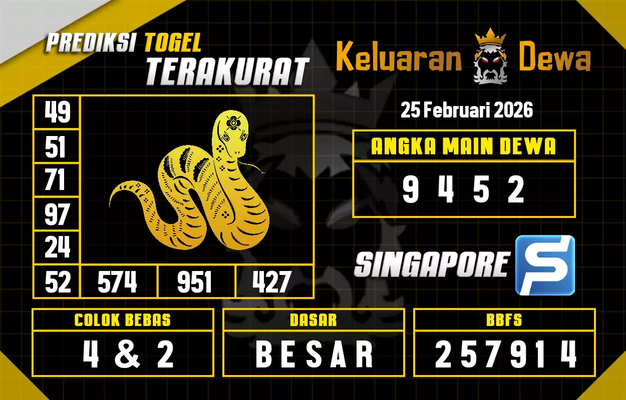 Syair togel singapore adalah kode gambar yang dikeluarkan ke publik untuk menolong pemain judi togel supaya dapat semakin gampang untuk menang di menerka-nerka angka togel. Hal ini dikerjakan untuk dapat memperoleh kode syair togel karena itu pemain dapat segera membuka situs prediksi togel online yang telah disiapkan dengan fasilitas online. Situs Prediksi JOGJATOTO sendiri memiliki beberapa situs prediksi togel yang dibikin oleh beberapa master togel yang telah eksper yang mempunyai mimpi dapat menolong beberapa pencinta togel menang di beli nomor togel.