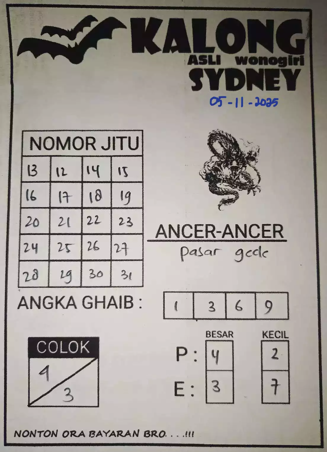 Tentu saja disini kami layani syair togel sydney lengkap yang dapat anda gunakan buat meramalkan angka dengan tepat dan akurat. Bila anda masih pemain pemula dan kebingungan langkah memakai syair togel karena itu kami akan menolong anda untuk membikin syair togel terakurat di sini. Bila anda mencari Situs Togel Online Terpercaya kamu dapat bergabung dengan JOGJATOTO dan nikmati banyak pasaran togel online dengan resmi 2025.