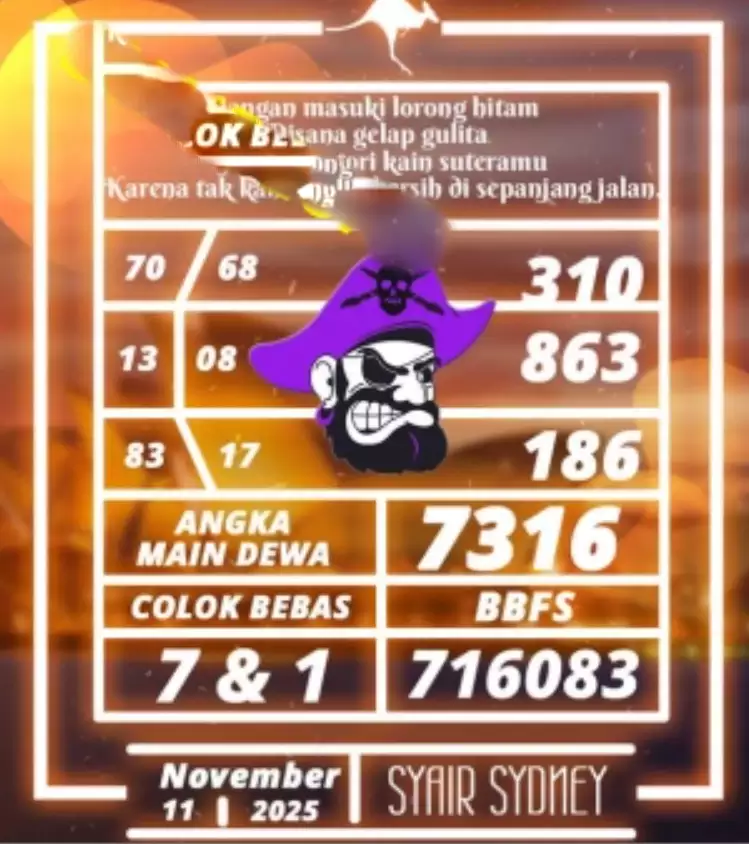 Syair togel sydney memang kerap terkait dengan angka keluaran sydney yang hendak muncul di masa nanti. Dalam Berkenaan ini beberapa baik dapat memaksudkan dan mengartikan syair togel online sdy itu akhirnya bisa memperoleh angka yang pas di masing-masing kali penempatan taruhan judi di Bandar Togel Online JOGJATOTO. Punyai beberapa keuntungan yang bagus sekali berkaitan dengan penempatan taruhan togel dengan sistem online. Dengan penempatan sama sesuai perhitungan sampai akan mendapati berkali-kali kemenangan. Silakan gunakan syair togel sdy ini untuk mendapati angka tepat untuk meraih kemenangan besar.