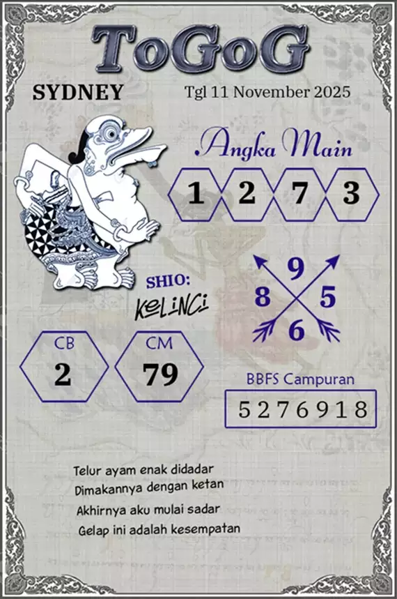 Dari beberapa sumber yang kita baca dan kita mengambil jika yang disimpulkan dengan syair togel sebagai ringkasan prediksi Shio atau ramalan shio. Kebalikannya untuk (KBBI), Syair togel sebagai aktivitas memperediksi atau meramal angka yang dijajal oleh pakar prediktor atau professional di bagiannya. Biasanya prediktor akan memakai beberapa sumber dari pemahaman mimpi, angka spiritual, angka taysen, sistem penanggalan jawa atau paito togel.