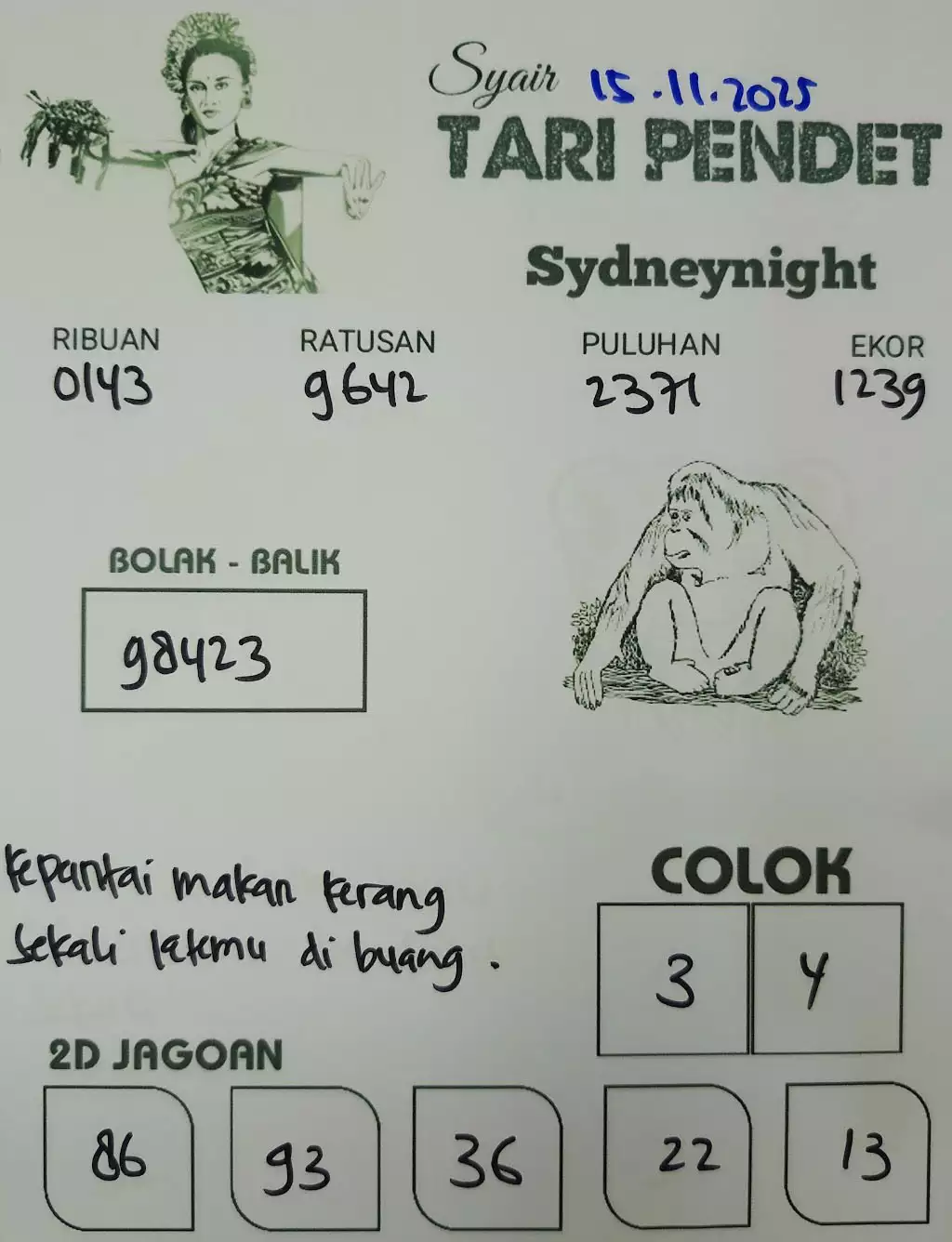 Syair togel sydney memang kerap terkait dengan angka keluaran sydney yang hendak muncul di masa nanti. Dalam Berkenaan ini beberapa baik dapat memaksudkan dan mengartikan syair togel online sdy itu akhirnya bisa memperoleh angka yang pas di masing-masing kali penempatan taruhan judi di Bandar Togel Online JOGJATOTO. Punyai beberapa keuntungan yang bagus sekali berkaitan dengan penempatan taruhan togel dengan sistem online. Dengan penempatan sama sesuai perhitungan sampai akan mendapati berkali-kali kemenangan. Silakan gunakan syair togel sdy ini untuk mendapati angka tepat untuk meraih kemenangan besar.