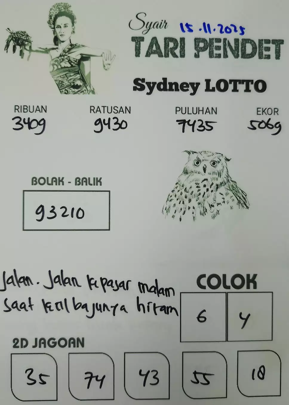 Tentu saja disini kami layani syair togel sydney lengkap yang dapat anda gunakan buat meramalkan angka dengan tepat dan akurat. Bila anda masih pemain pemula dan kebingungan langkah memakai syair togel karena itu kami akan menolong anda untuk membikin syair togel terakurat di sini. Bila anda mencari Situs Togel Online Terpercaya kamu dapat bergabung dengan JOGJATOTO dan nikmati banyak pasaran togel online dengan resmi 2025.