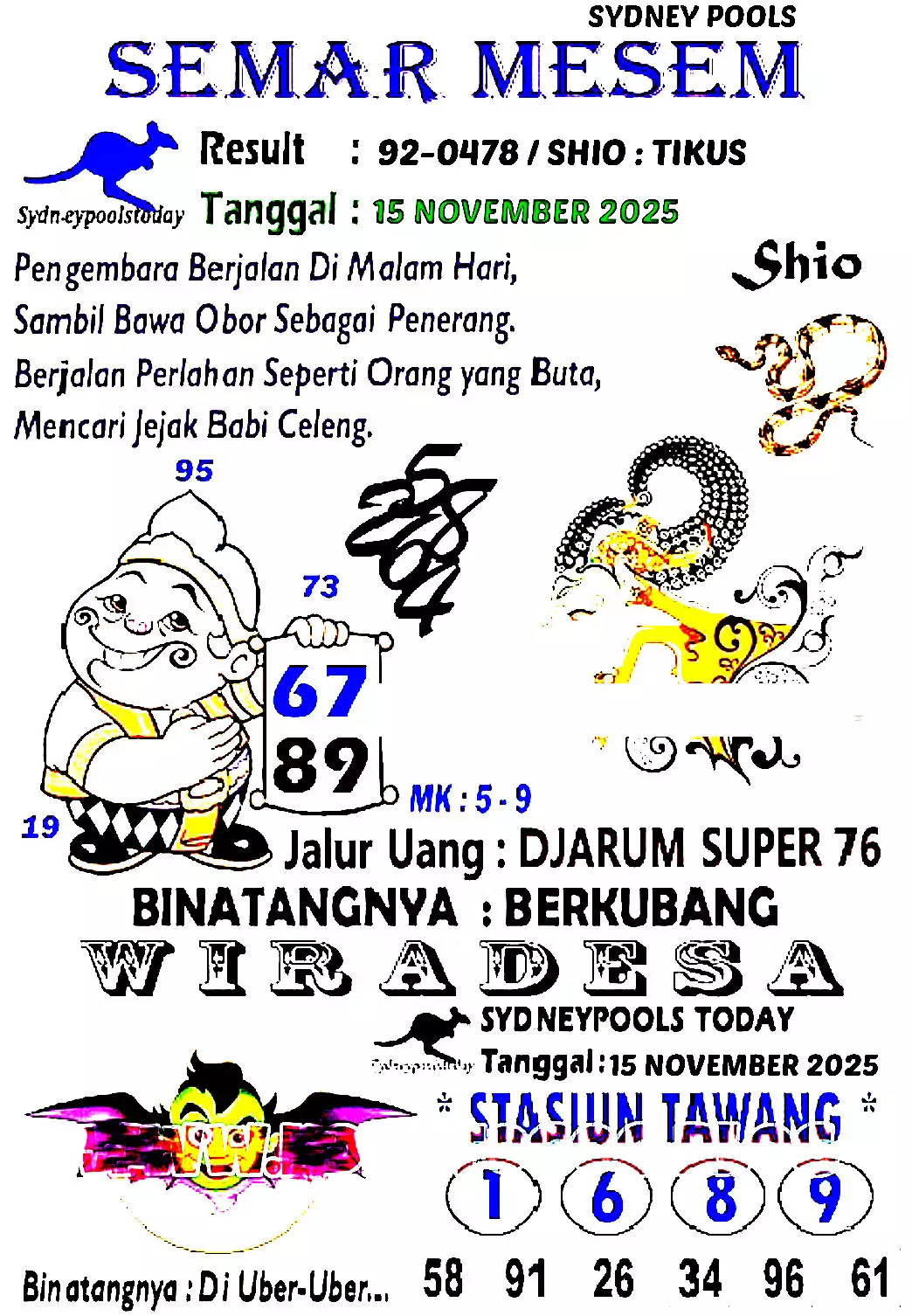 Syair togel sydney adalah kode gambar yang dikeluarkan ke publik untuk menolong pemain judi togel supaya dapat semakin gampang untuk menang di menerka-nerka angka togel. Hal ini dikerjakan untuk dapat memperoleh kode syair togel karena itu pemain dapat segera membuka situs prediksi togel online yang telah disiapkan dengan fasilitas online. Situs Prediksi JOGJATOTO sendiri memiliki beberapa situs prediksi togel yang dibikin oleh beberapa master togel yang telah eksper yang mempunyai mimpi dapat menolong beberapa pencinta togel menang di beli nomor togel.
