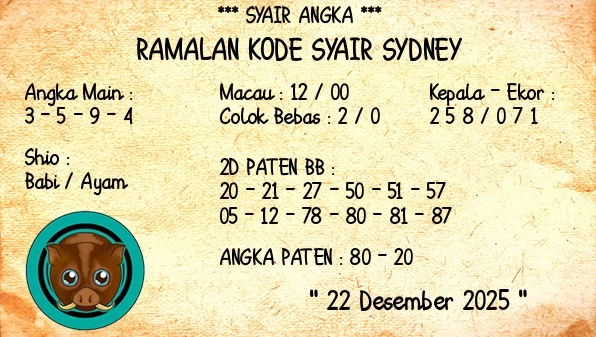 Tentu saja disini kami layani syair togel sydney lengkap yang dapat anda gunakan buat meramalkan angka dengan tepat dan akurat. Bila anda masih pemain pemula dan kebingungan langkah memakai syair togel karena itu kami akan menolong anda untuk membikin syair togel terakurat di sini. Bila anda mencari Situs Togel Online Terpercaya kamu dapat bergabung dengan JOGJATOTO dan nikmati banyak pasaran togel online dengan resmi 2025.