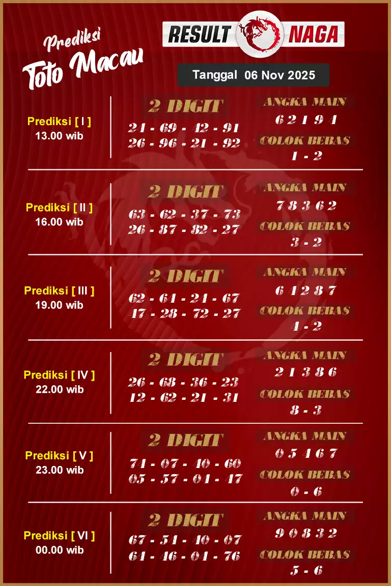 Result ini sebagai dari hasil keluarnya semua nomor yang telah ada dalam beberapa masa. Kamu dapat menyaksikan tabel result ini di Situs Judi Syair Togel. Disitu akan dipertunjukkan info dengan lengkap dimulai dari bersamaan pada, masa dan angka dari semua pasaran. Dari beberapa data itu kamu dapat merangkum peluang angka yang belum keluar.
