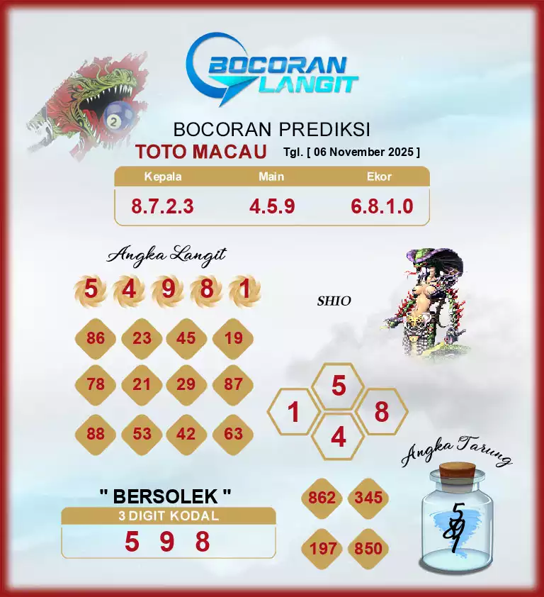 Syair togel Toto Macau adalah kode gambar yang dikeluarkan ke publik untuk menolong pemain judi togel supaya dapat semakin gampang untuk menang di menerka-nerka angka togel. Hal ini dikerjakan untuk dapat memperoleh kode syair togel karena itu pemain dapat segera membuka situs prediksi togel online yang telah disiapkan dengan fasilitas online. Situs Prediksi JOGJATOTO sendiri memiliki beberapa situs prediksi togel yang dibikin oleh beberapa master togel yang telah eksper yang mempunyai mimpi dapat menolong beberapa pencinta togel menang di beli nomor togel.