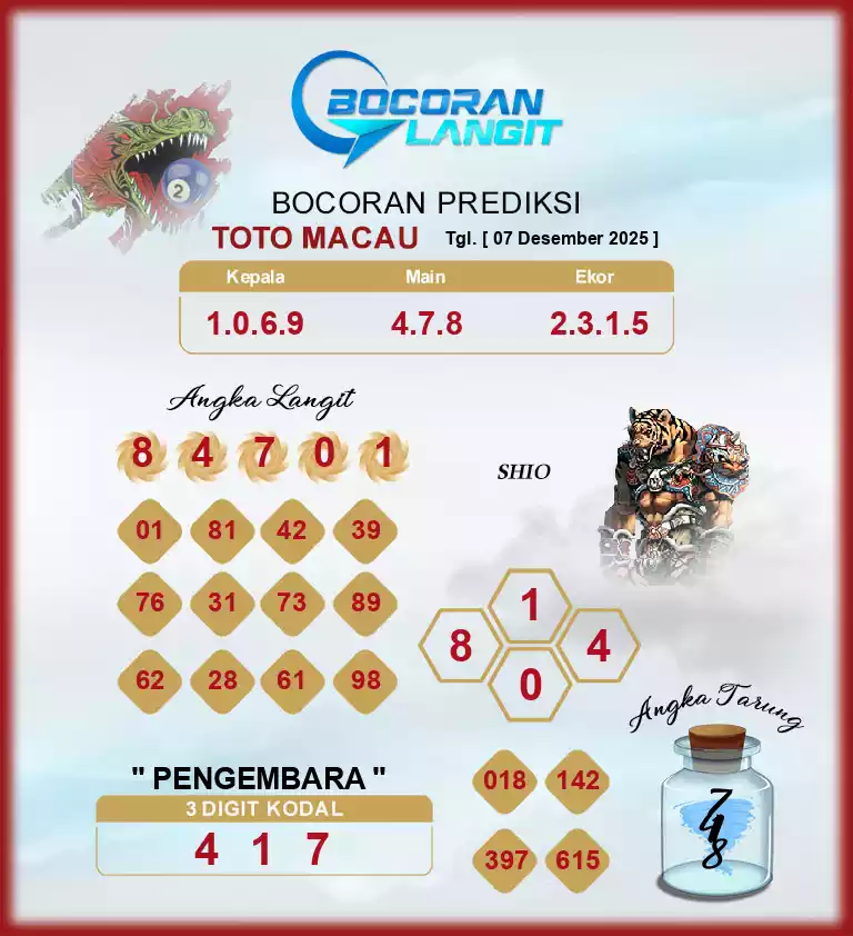 Syair togel Toto Macau adalah kode gambar yang dikeluarkan ke publik untuk menolong pemain judi togel supaya dapat semakin gampang untuk menang di menerka-nerka angka togel. Hal ini dikerjakan untuk dapat memperoleh kode syair togel karena itu pemain dapat segera membuka situs prediksi togel online yang telah disiapkan dengan fasilitas online. Situs Prediksi JOGJATOTO sendiri memiliki beberapa situs prediksi togel yang dibikin oleh beberapa master togel yang telah eksper yang mempunyai mimpi dapat menolong beberapa pencinta togel menang di beli nomor togel.