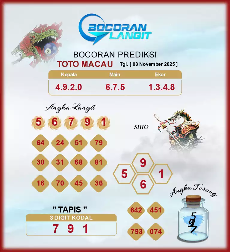 Syair togel Toto Macau adalah kode gambar yang dikeluarkan ke publik untuk menolong pemain judi togel supaya dapat semakin gampang untuk menang di menerka-nerka angka togel. Hal ini dikerjakan untuk dapat memperoleh kode syair togel karena itu pemain dapat segera membuka situs prediksi togel online yang telah disiapkan dengan fasilitas online. Situs Prediksi JOGJATOTO sendiri memiliki beberapa situs prediksi togel yang dibikin oleh beberapa master togel yang telah eksper yang mempunyai mimpi dapat menolong beberapa pencinta togel menang di beli nomor togel.