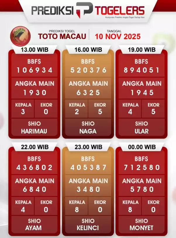 Syair togel Toto Macau adalah kode gambar yang dikeluarkan ke publik untuk menolong pemain judi togel supaya dapat semakin gampang untuk menang di menerka-nerka angka togel. Hal ini dikerjakan untuk dapat memperoleh kode syair togel karena itu pemain dapat segera membuka situs prediksi togel online yang telah disiapkan dengan fasilitas online. Situs Prediksi JOGJATOTO sendiri memiliki beberapa situs prediksi togel yang dibikin oleh beberapa master togel yang telah eksper yang mempunyai mimpi dapat menolong beberapa pencinta togel menang di beli nomor togel.