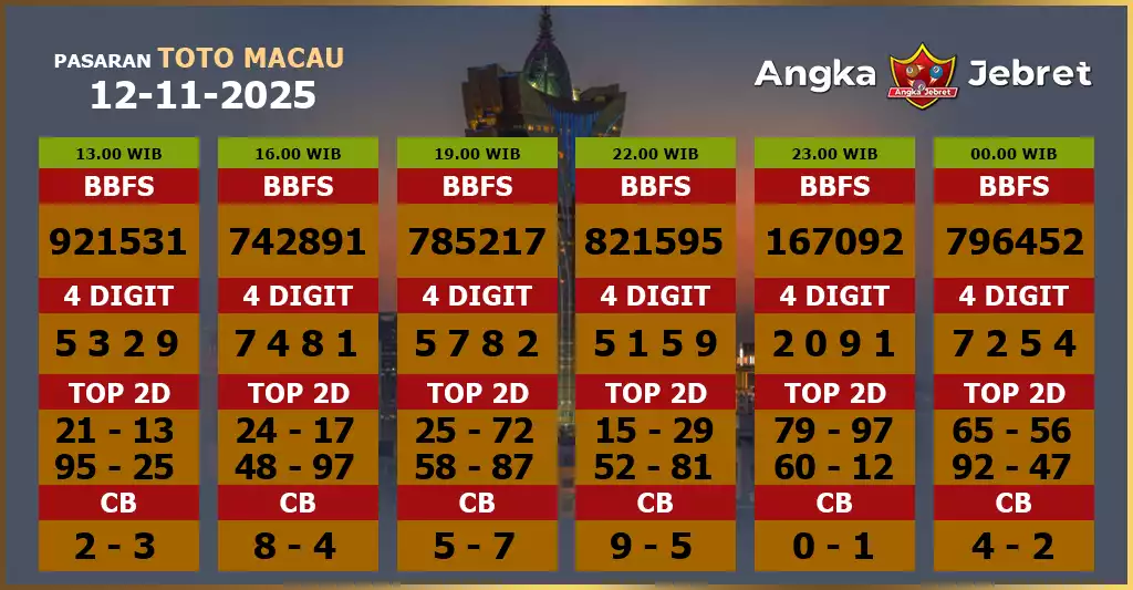 Syair togel Toto Macau memang kerap terkait dengan angka keluaran Toto Macau yang hendak muncul di masa nanti. Dalam Berkenaan ini beberapa baik dapat memaksudkan dan mengartikan syair togel online Toto Macau itu akhirnya bisa memperoleh angka yang pas di masing-masing kali penempatan taruhan judi di Bandar Togel Online JOGJATOTO. Punyai beberapa keuntungan yang bagus sekali berkaitan dengan penempatan taruhan togel dengan sistem online. Dengan penempatan sama sesuai perhitungan sampai akan mendapati berkali-kali kemenangan. Silakan gunakan syair togel Toto Macau ini untuk mendapati angka tepat untuk meraih kemenangan besar.
