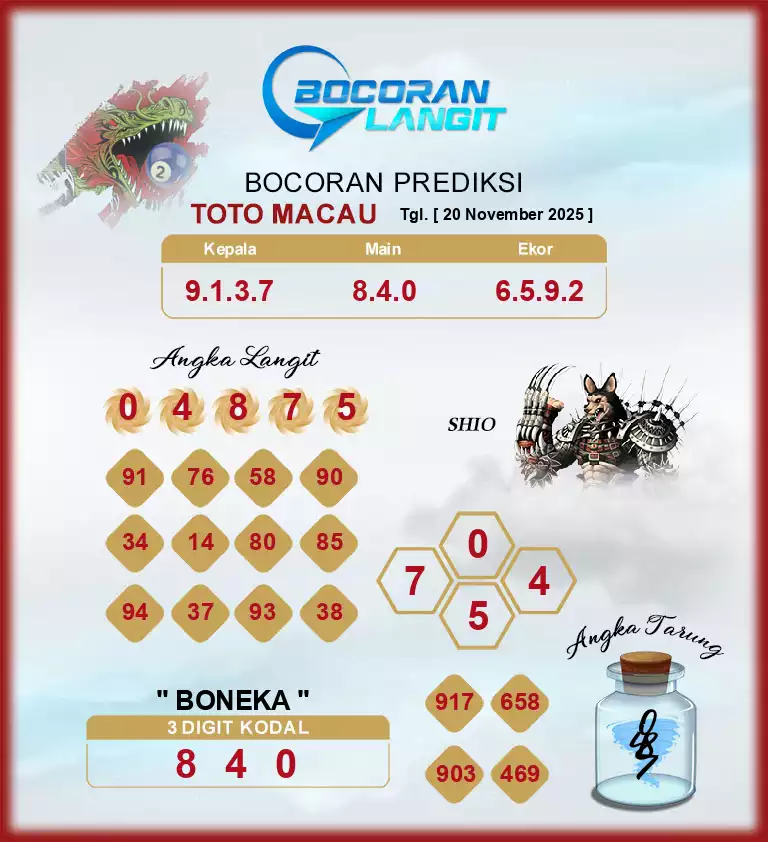 Syair togel Toto Macau adalah kode gambar yang dikeluarkan ke publik untuk menolong pemain judi togel supaya dapat semakin gampang untuk menang di menerka-nerka angka togel. Hal ini dikerjakan untuk dapat memperoleh kode syair togel karena itu pemain dapat segera membuka situs prediksi togel online yang telah disiapkan dengan fasilitas online. Situs Prediksi JOGJATOTO sendiri memiliki beberapa situs prediksi togel yang dibikin oleh beberapa master togel yang telah eksper yang mempunyai mimpi dapat menolong beberapa pencinta togel menang di beli nomor togel.