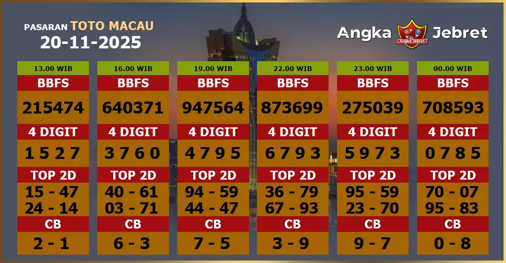 Syair togel Toto Macau memang kerap terkait dengan angka keluaran Toto Macau yang hendak muncul di masa nanti. Dalam Berkenaan ini beberapa baik dapat memaksudkan dan mengartikan syair togel online Toto Macau itu akhirnya bisa memperoleh angka yang pas di masing-masing kali penempatan taruhan judi di Bandar Togel Online JOGJATOTO. Punyai beberapa keuntungan yang bagus sekali berkaitan dengan penempatan taruhan togel dengan sistem online. Dengan penempatan sama sesuai perhitungan sampai akan mendapati berkali-kali kemenangan. Silakan gunakan syair togel Toto Macau ini untuk mendapati angka tepat untuk meraih kemenangan besar.