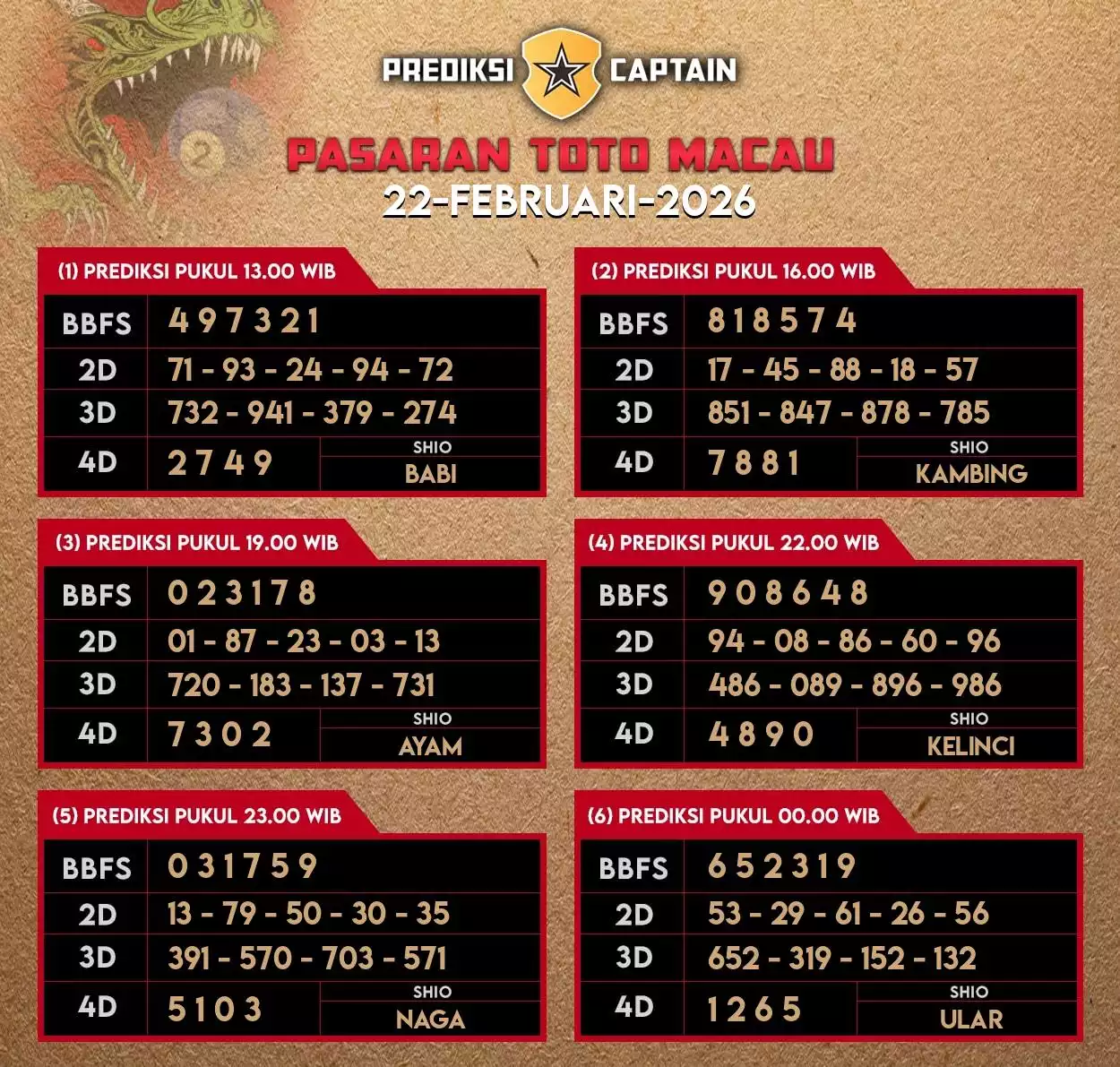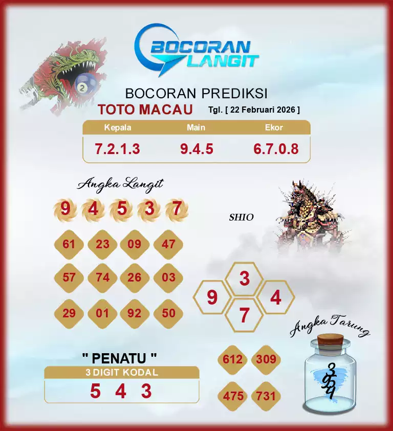Syair togel Toto Macau adalah kode gambar yang dikeluarkan ke publik untuk menolong pemain judi togel supaya dapat semakin gampang untuk menang di menerka-nerka angka togel. Hal ini dikerjakan untuk dapat memperoleh kode syair togel karena itu pemain dapat segera membuka situs prediksi togel online yang telah disiapkan dengan fasilitas online. Situs Prediksi JOGJATOTO sendiri memiliki beberapa situs prediksi togel yang dibikin oleh beberapa master togel yang telah eksper yang mempunyai mimpi dapat menolong beberapa pencinta togel menang di beli nomor togel.