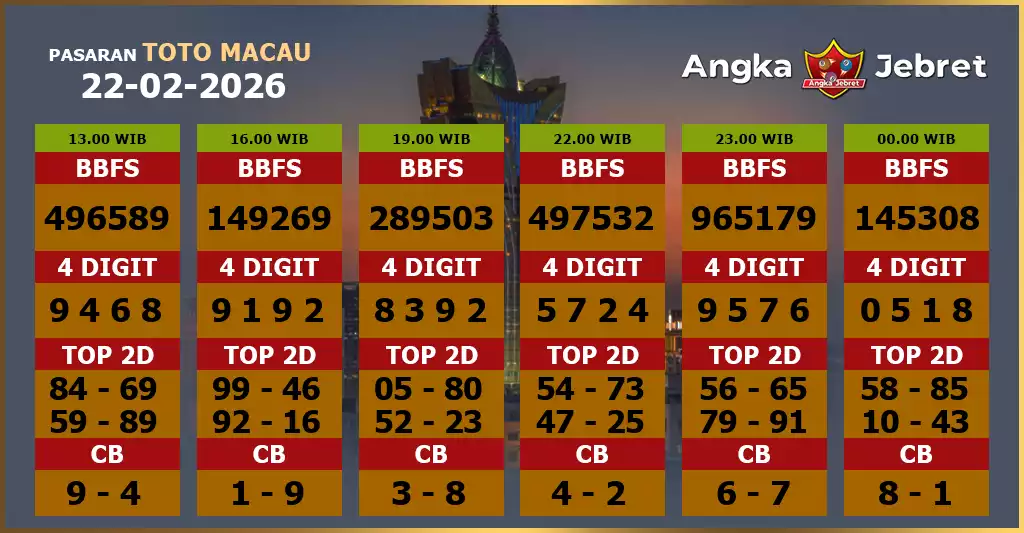 Syair togel Toto Macau memang kerap terkait dengan angka keluaran Toto Macau yang hendak muncul di masa nanti. Dalam Berkenaan ini beberapa baik dapat memaksudkan dan mengartikan syair togel online Toto Macau itu akhirnya bisa memperoleh angka yang pas di masing-masing kali penempatan taruhan judi di Bandar Togel Online JOGJATOTO. Punyai beberapa keuntungan yang bagus sekali berkaitan dengan penempatan taruhan togel dengan sistem online. Dengan penempatan sama sesuai perhitungan sampai akan mendapati berkali-kali kemenangan. Silakan gunakan syair togel Toto Macau ini untuk mendapati angka tepat untuk meraih kemenangan besar.