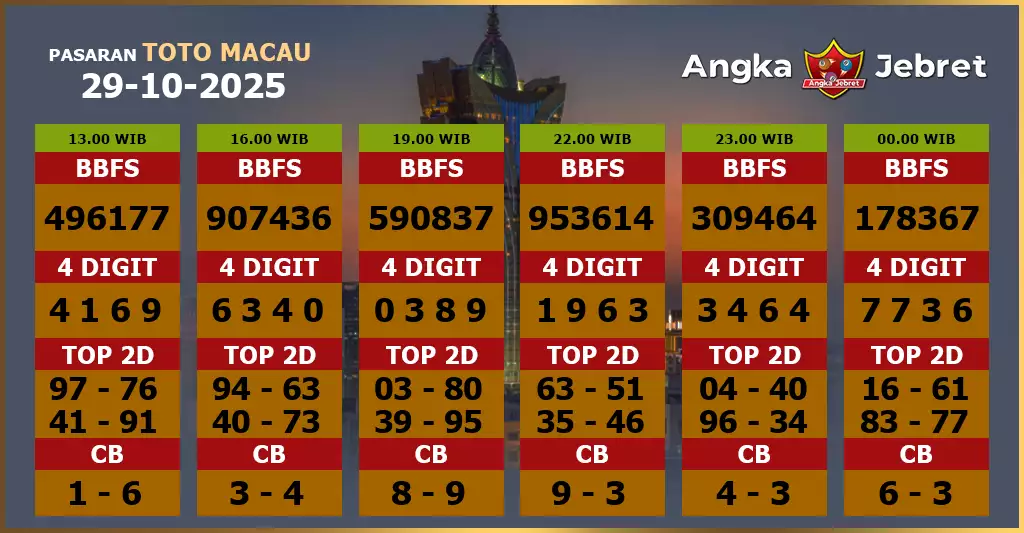 Syair togel Toto Macau memang kerap terkait dengan angka keluaran Toto Macau yang hendak muncul di masa nanti. Dalam Berkenaan ini beberapa baik dapat memaksudkan dan mengartikan syair togel online Toto Macau itu akhirnya bisa memperoleh angka yang pas di masing-masing kali penempatan taruhan judi di Bandar Togel Online JOGJATOTO. Punyai beberapa keuntungan yang bagus sekali berkaitan dengan penempatan taruhan togel dengan sistem online. Dengan penempatan sama sesuai perhitungan sampai akan mendapati berkali-kali kemenangan. Silakan gunakan syair togel Toto Macau ini untuk mendapati angka tepat untuk meraih kemenangan besar.